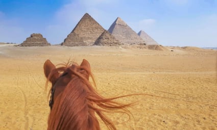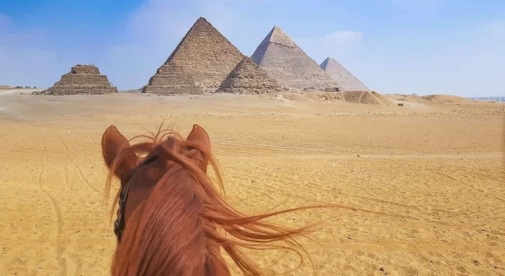 Experience a new activity in the pyramids of Giza, try horseback riding, watching the beautiful pyramids, sitting in desserts, enjoying the fresh air and watching the ancient Egyptian