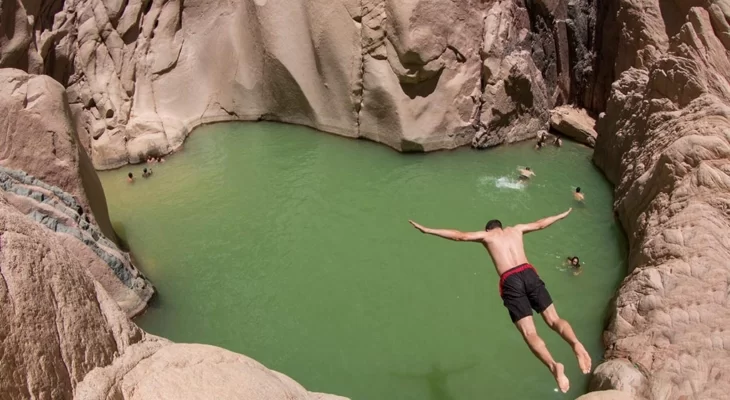 The trip starts at 8 am with a land cruise to the Washwashi Valley, seeing the most beautiful lake in Sinai and enjoying the crazy jump in it, then moving to Ras Shitan for lunch and snorkeling, returning at 5 pm to Dahab.