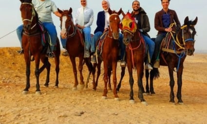 في بداية كل طلعة بيبقى في تقديمة بسيطة عن الخيل للمبتدئين عشان لو في حد اول مرة يركب او حتى يتعامل مع حصان وفخلال الطلعه بنمشي ونجري
