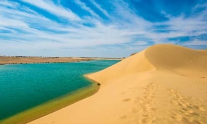 في اليوم التالي نواصل طريقنا إلى البحيرة السحرية - المياه الزرقاء بين الكثبان الرملية - حيث سنتناول الغداء قبل أن نعود إلى القاهرة.