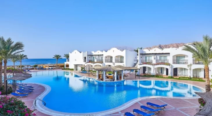 هيوفرلك الفندق الفاخر الـ 4 نجوم إطلالات خلابة على البحر الأحمر وجبال سيناء. ويضم حمام سباحه على شكل بحيرة وعلاجات مساج وساونا.