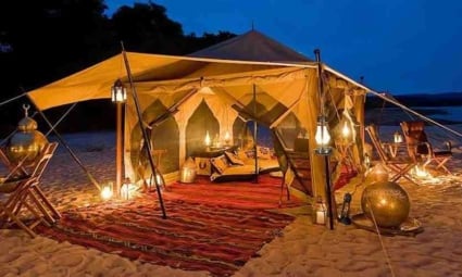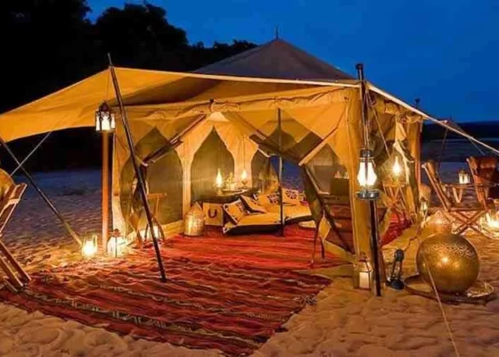 تمتع بقضاء وقت ممتع فى أحضان الجبال، مع الاستماع إلى الموسيقي البدوية، ومشاهدة الالعاب النارية فى خيمة الشيخ محمد الغنام.