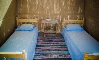 في وسط جبال سينا و الريست هناك فيها انواع من الغرف زي الغرفة المكيفة بحمام خاص فيه سينجل و دبل و تريبل و كمان فيه كوخ سينجل و دبل و تريبل