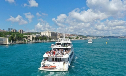 استمتع برحلة بحرية غروب الشمس لمدة 2.5 ساعة عبر مضيق البوسفور، مرورًا بمعالم شهيرة مثل برج الفتاة، كوزغنجوك، قصر بيلربي، قصر كوتشوك سو، حصن الأناضول، جسر فاتح سلطان محمد، حصن روملي، أرناؤوط كوي، مسجد بويوك مجيدية، وقصر دولمة بهجة، وجسر البوسفور، و مسجد دولمة بهجة. استمتع بالمشروبات غير المحدودة مع دليل صوتي لتعرف تاريخ إسطنبول. لا تفوت هذه التجربة الرائعة!