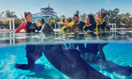 يعتبر خليج الدلافين هو الواجهة الأروع لقضاء يوم رائع يناسب جميع أفراد العائلة. في جولة تستمر لمدة ساعة واحدة، ستتمكن من الاستمتاع واللعب مع الدلافين في مياه جميلة غير العميقة. بمجرد دخولك إلى الخليج، ستقابل شخص متخصص في الثدييات البحرية الذي سيحدثك عن العديد من الحقائق والمعلومات الممتعة عن الدلافين وسلوكهم. كما سيتم مرافقتك طوال هذه الجولة بواسطة الفريق المتخصص الذي يرعي الدلافين لجعلك تشعر بالأمان. يمكنك أيضًا دخول حديقة أكوافنتشر المائية بعد الانتهاء من تجربة الدلافين والاستمتاع بشاطئ خاص ومشمس لتسترخي أو إذا كنت من محبي الحركة والإثارة، فعليك القيام بالعديد من الأنشطة المائية مثل المنزلقات المائية والثريل رايدز. انضم إلينا الآن واحجز تذكرتك.
