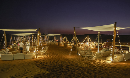 انغمس في تجربة تخييم مع عشاء لذيذ في مخيم الوادي! تخيل نفسك تتناول عشاء لذيذًا أثناء غروب الشمس، محاطًا بصحراء رأس الخيمة الذهبية. حيث تتوهج الشمس الدافئة فوق الصحراء الواسعة ويمتلئ الهواء بأصوات الطبيعة اللطيفة والأجواء الهادئة. ستستمتع بإقامتك في منطقة مريحة حيث تستمع إلي موسيقى جميلة في الخلفية. سيكون هناك الكثير من الأنشطة التي يجب القيام بها، مثل التزلج على الرمال، والرماية الناعمة، ومشاهدة عروض العزف علي العود، وركوب الجمال في المعسكر، بالإضافة إلي عرض الصقر الساحر. أسرع واحجز تذكرتك الآن!