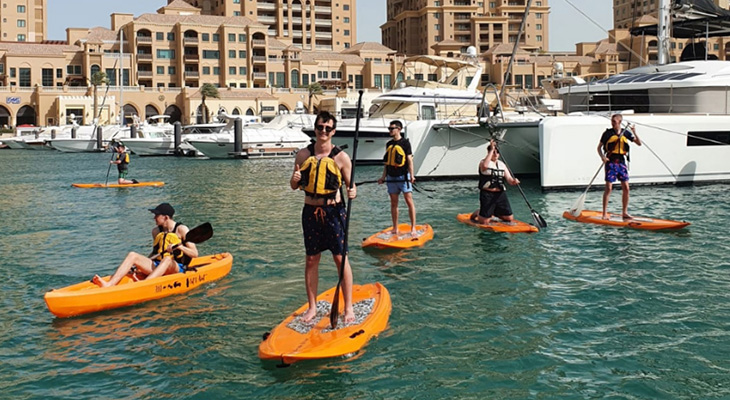 تجربة الكاياك و التجديف على لوح سباحة في قطر