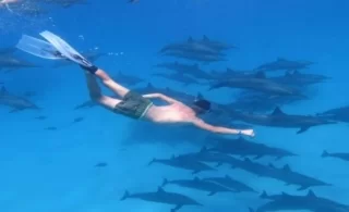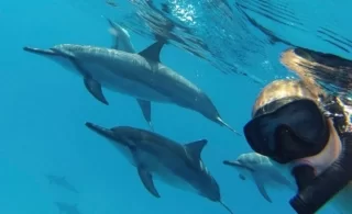Don't worry. Join us on this dolphin snorkelling trip. Explore the marine life on a snorkelling tour from Hurghada. And enjoy swimming with dolphins.