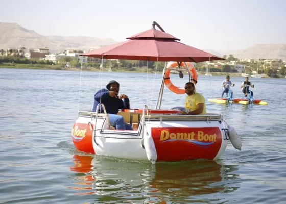 If you're looking for a different excursion, here's our brand new donut boat. Take your family or friends and enjoy an unforgettable hour of life with them. Enjoy the boat in the Red Sea, full of charm and beauty.