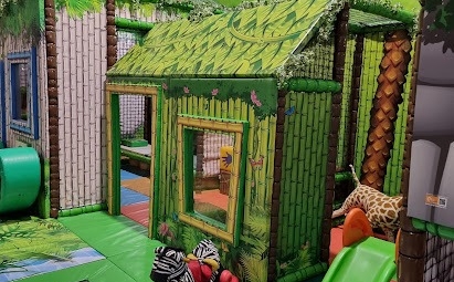 A safe jungle-themed area for little ones to explore, play, and learn, designed to help them grow into larger play zones over time.