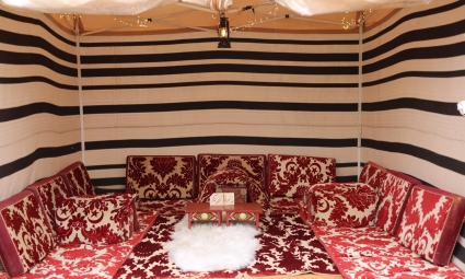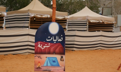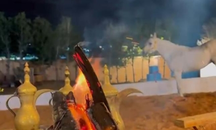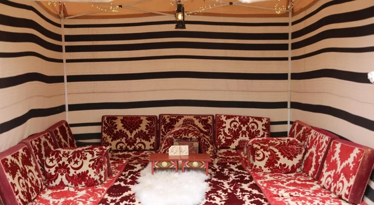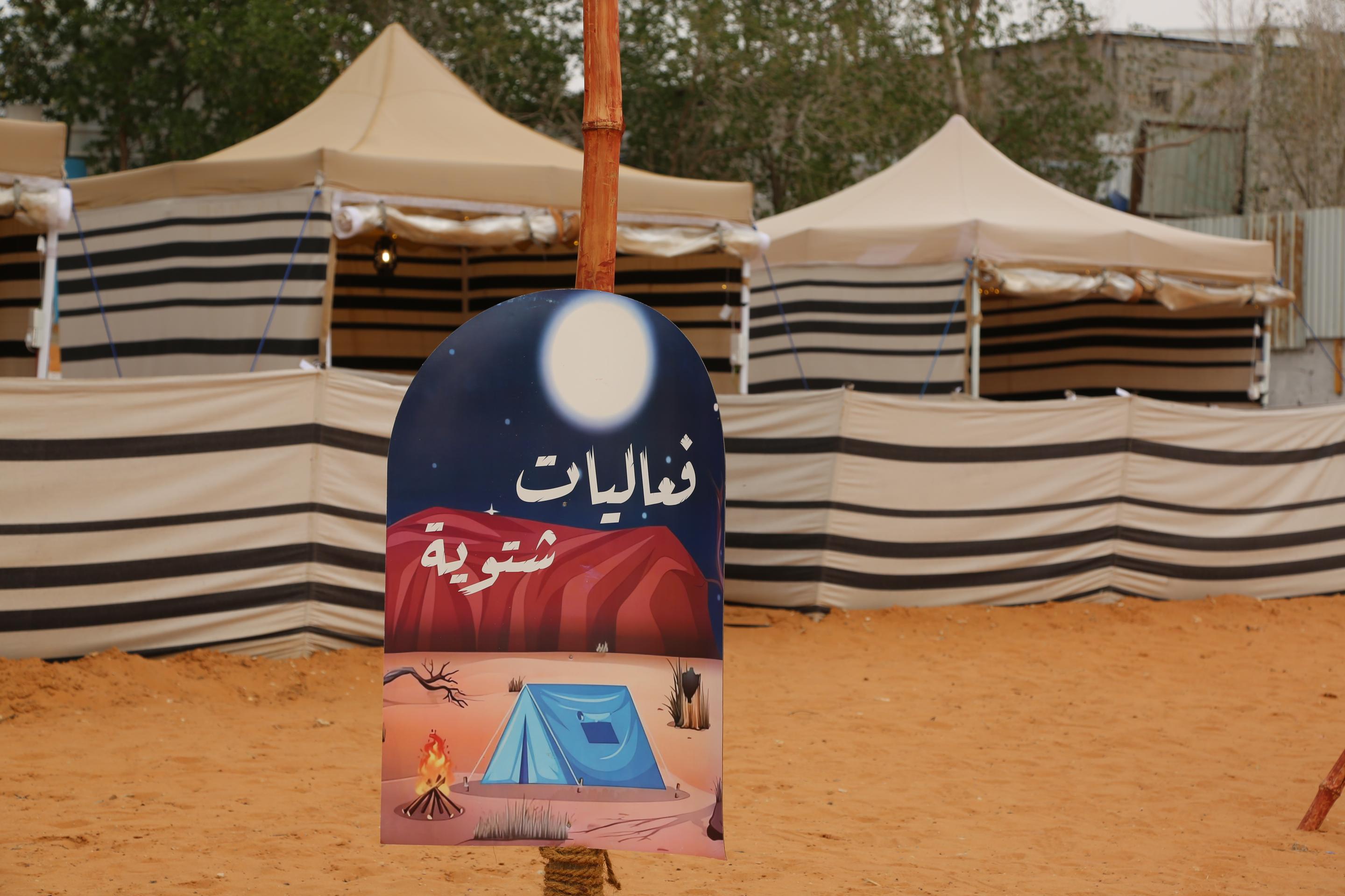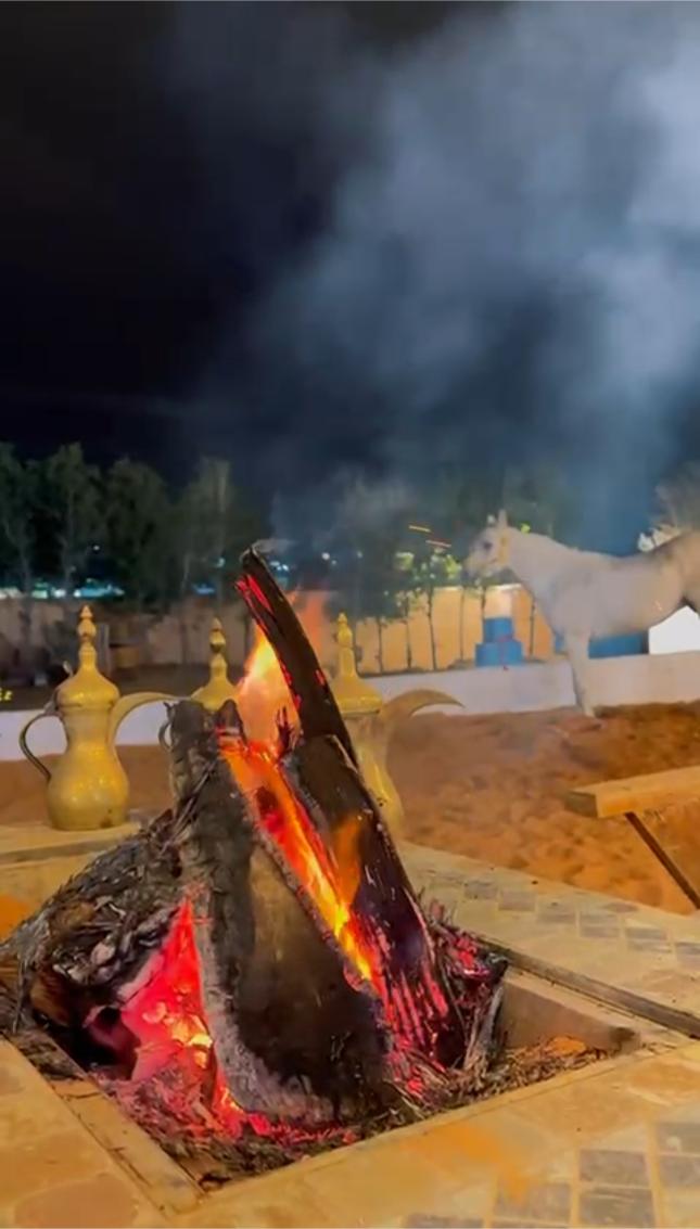 Enjoy a cozy tent experience in Al Muzahmiya with a warm fire and horse riding, perfect for relaxing outdoors and creating memorable moments.