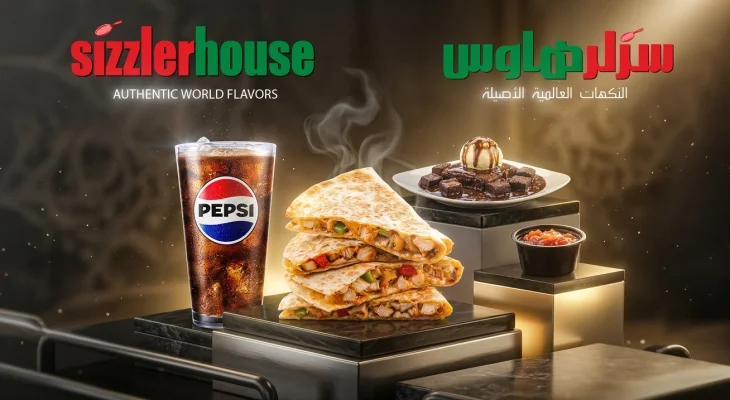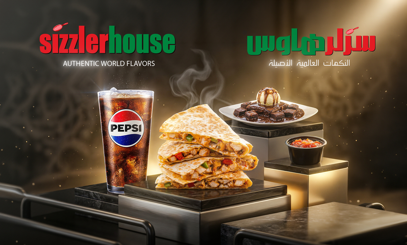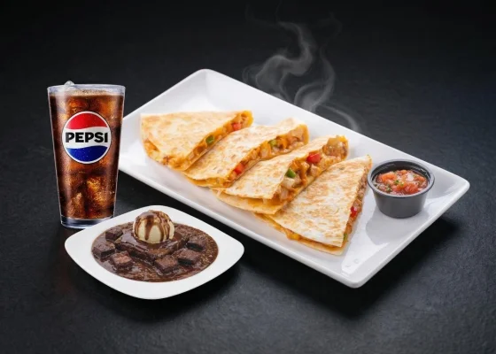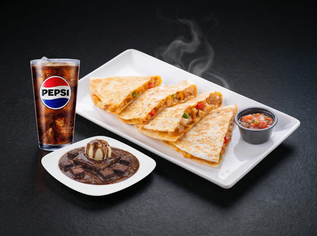 Enjoy a complete dining experience at Sizzler House Hamra at a special price, featuring delicious dishes including quesadilla, brownie delight, and a soft drink.