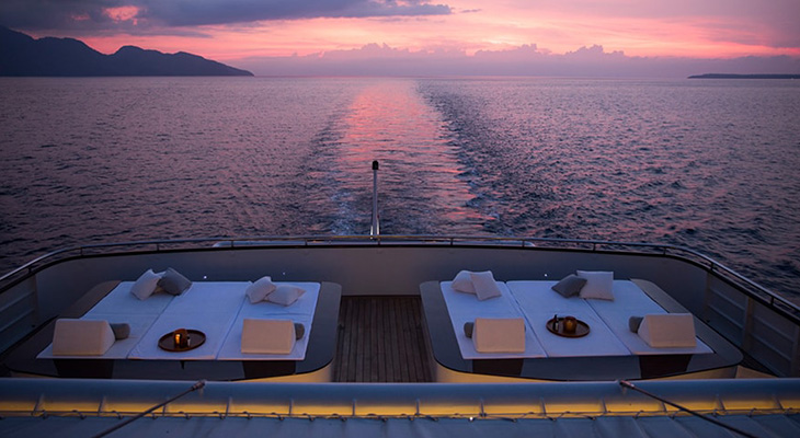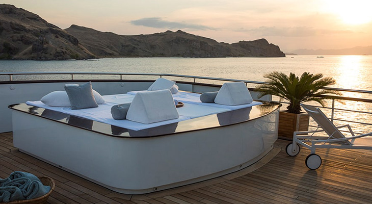 Spending 7 nights with us on a cruise trip to discover Ambon & Spice islands, on Aqua blu board which has a special experience. Aqua blu is one of the best ships to discover east Indonesia according to international standards. The ship is designed to be more peaceful & comfortable for guests, and it contains 5 floors & 15 suites. It also has attractive spaces & a beautiful sun deck, their corners which are beautifully designed by copper & ivory. Give yourself this amazing chance which is full of rest & relaxation.